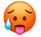 真っ赤な顔と汗の表情の絵文字は、暑さや辛さを表す絵文字となります。