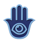 青い手に目が描かれた絵文字は「ハムサ」「ファティマの手」と呼ばれるお守りです。
